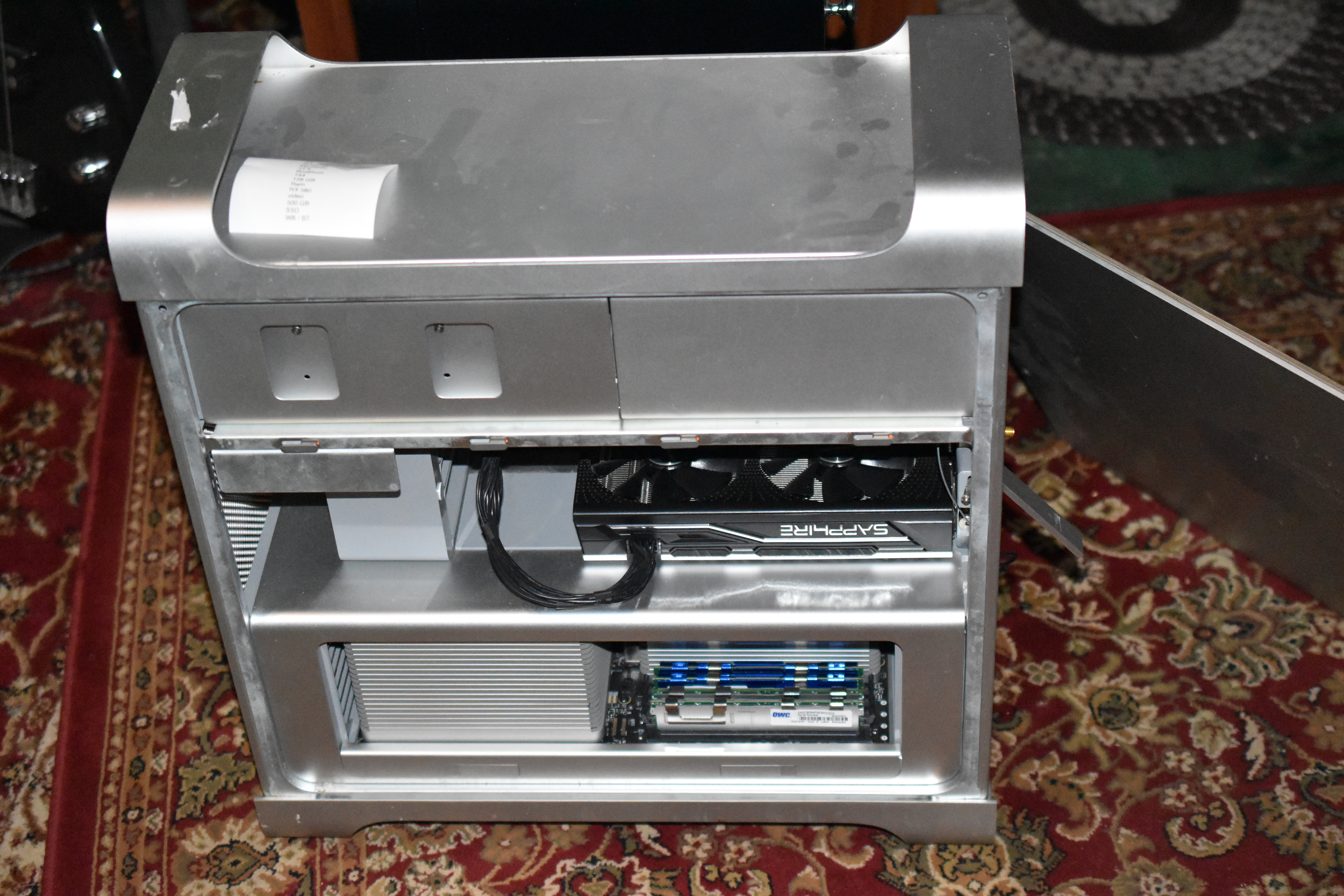 The installed RX 580 8GB GPU is flashed and provides full Boot Screen and Boot Picker support.